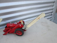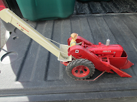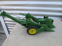White PTO driven auger; John Deere 45 2-row picker; John Deere 4320 Diesel tractor; J D 4020 w/237 2-row picker; IH 560 w/2-row picker; Farmall M w/2-row picker; Massey Ferguson 760 combine; JD 4000 diesel tractor; Ford Ferguson w/2-bottom plow; JD wagon; JD 7800 tractor; JD MC dozer; JD Titan II combine; JD 2640 Field of Dreams tractor; JD 635 Mower/conditioner; JD Waterloo Boy; Toy gas pump; JD 4020 Diesel tractor w/loader; IH TD 24 Dozer; IH 5488 tractor; IH Farmall 544 State Fair tractor; Farmall 200 tractor; Farmall 504 tractor w/cultivator; Farmall 130 tractor; Farmall A tractor; Old sailing ship; JD metal thermometer; A lot of these are Precision toys, there are not boxes for all of them. This is just a partial listing of the farm toys for this auction. TERMS OF SALE: